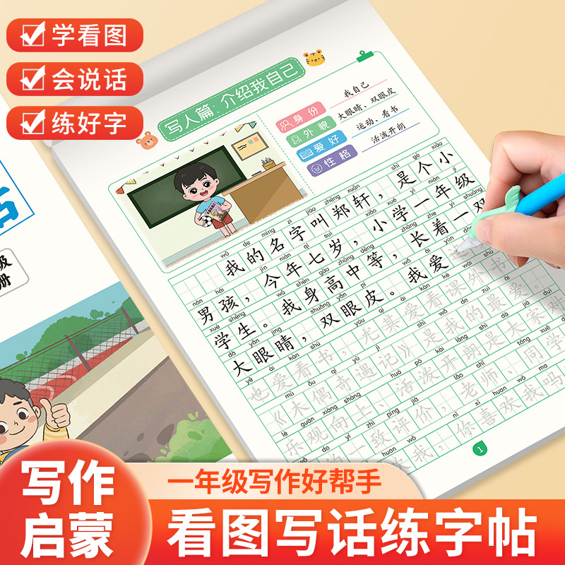 図を見て話を書きます。一年生二年生の字帖特別訓練小学生専用の字帖作文は毎日練習します。