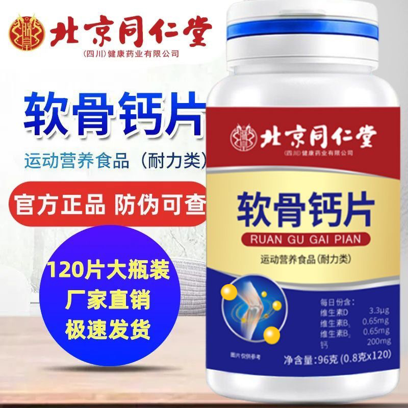 北京同仁堂软骨钙片120片碳酸钙维生素B1B2维生素D片1件代发批发