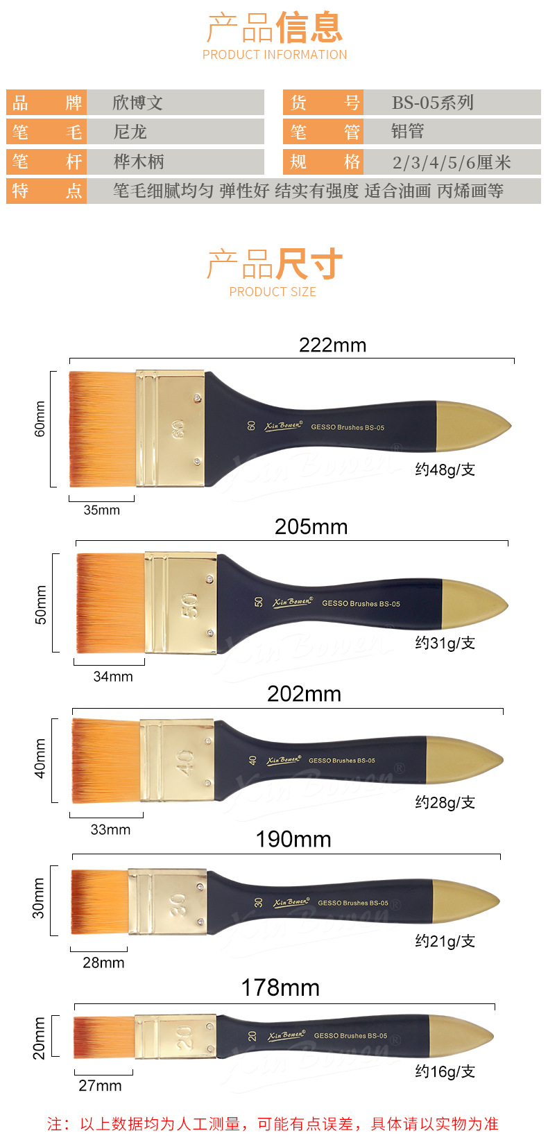 Xinbowen ナイロンブラシアクリルガッシュ水彩油絵ブラシアート学生特別な手描きブラシ卸売