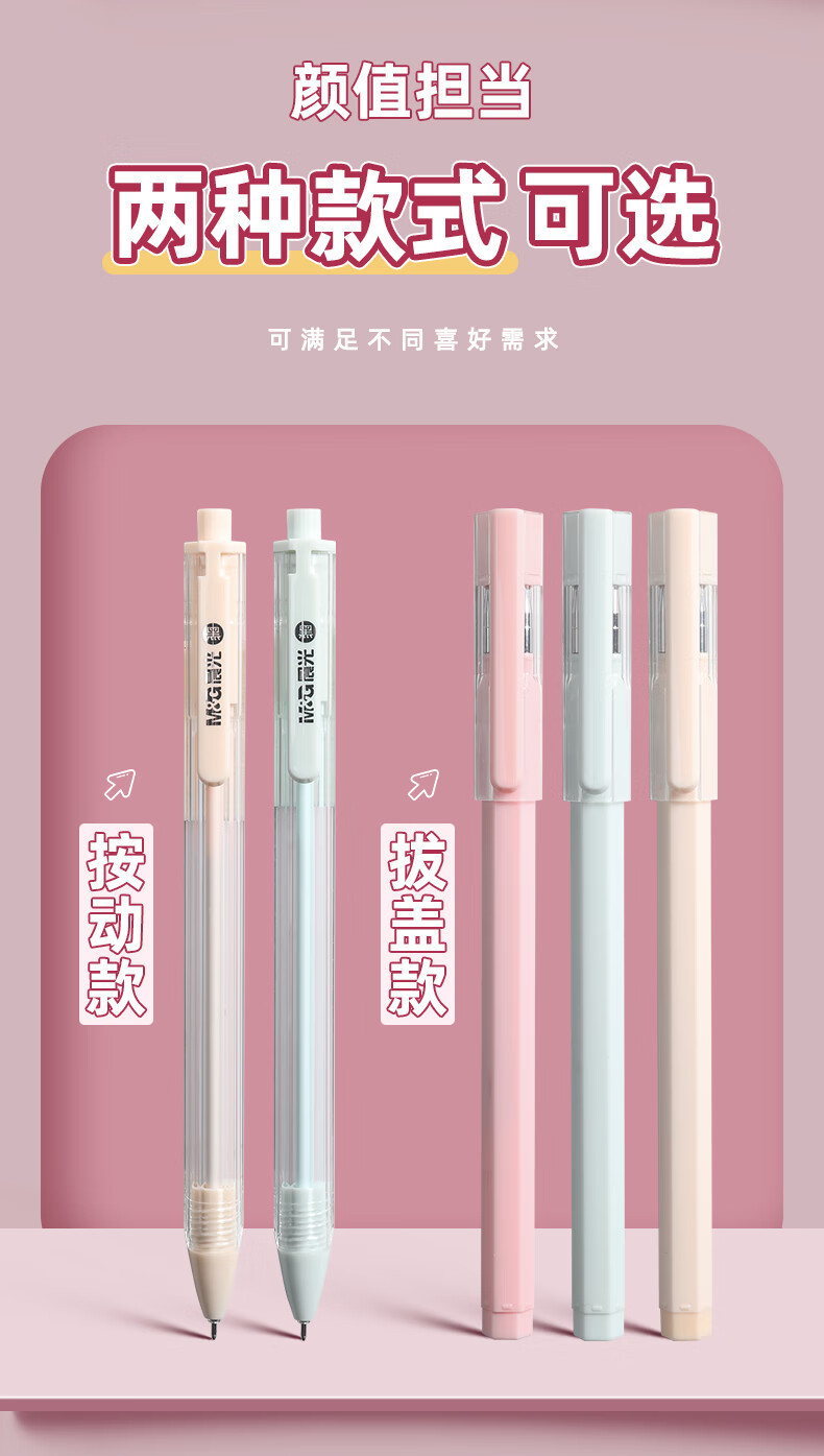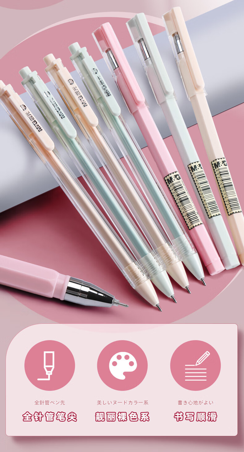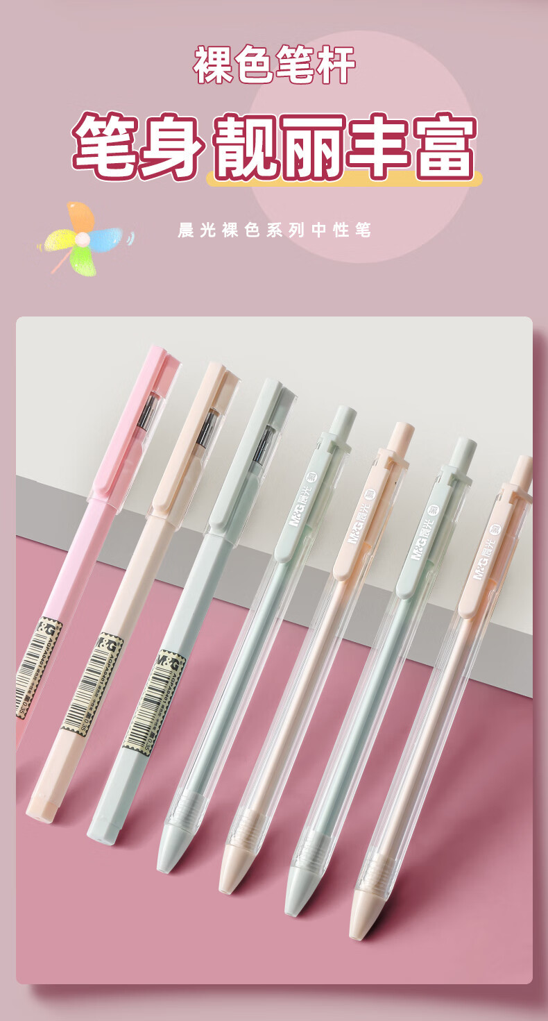 晨光文具裸色控中性笔学生0.35mm小清新全针管黑色水性笔AGPA0401