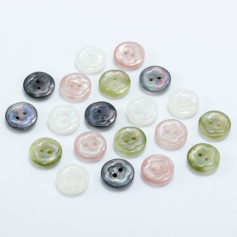 现货樱花粉珠光两眼简约树脂扣POLO衬衫小扣子清新色系男女服饰扣