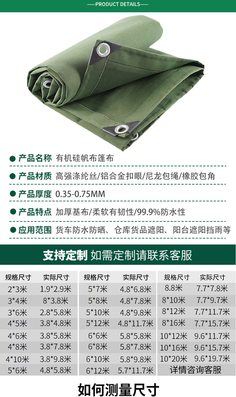 高強度シルクグリーンナイフスクレーパー防雨・日焼け防止シェードクロスシリコンコーティングキャンバス日よけターポリン貨物場所カバークロス