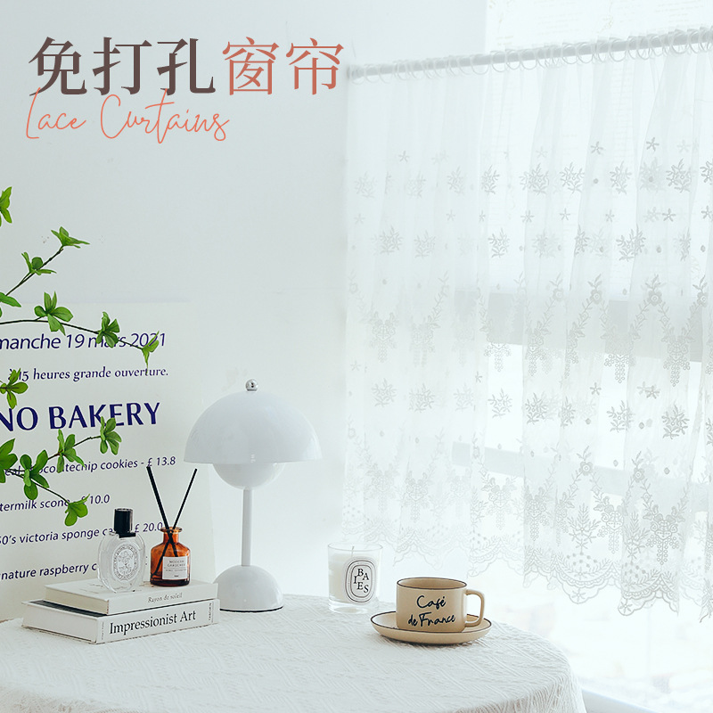 穴を開けないカーテンのカーテンの伸縮棒のカーテンの美しいレースの白い糸のカーテンの写真を撮る背景の布の撮影の道具