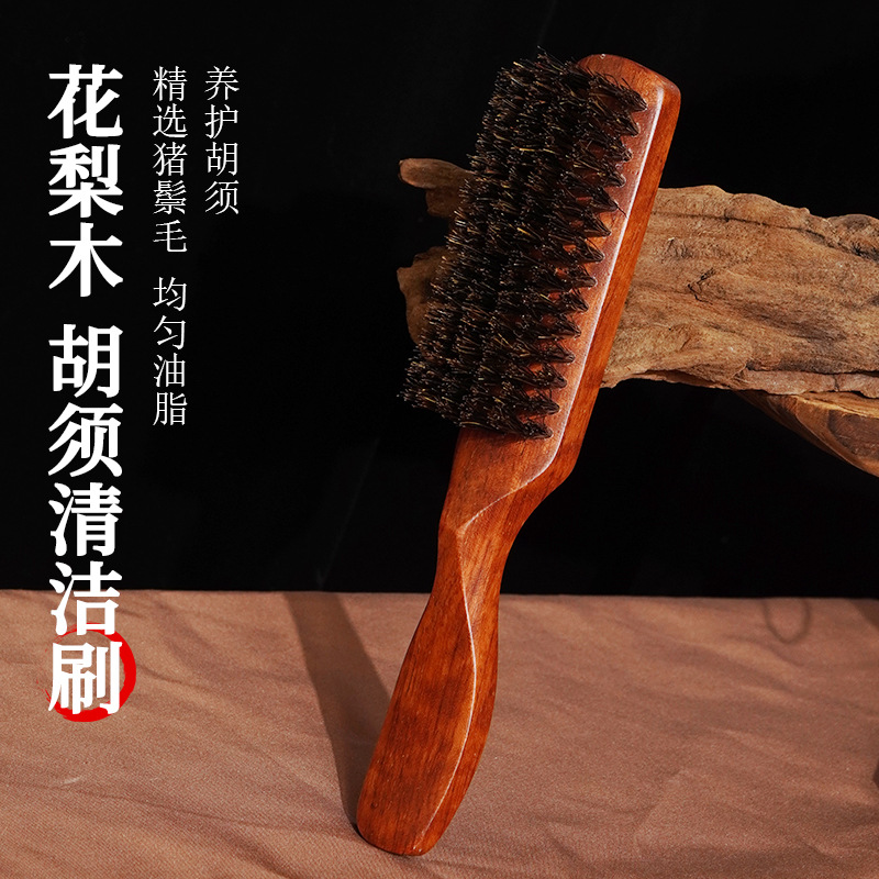 亚马逊男士油头造型胡须刷实木猪鬃毛柔顺碎发扫家用造型按摩梳子