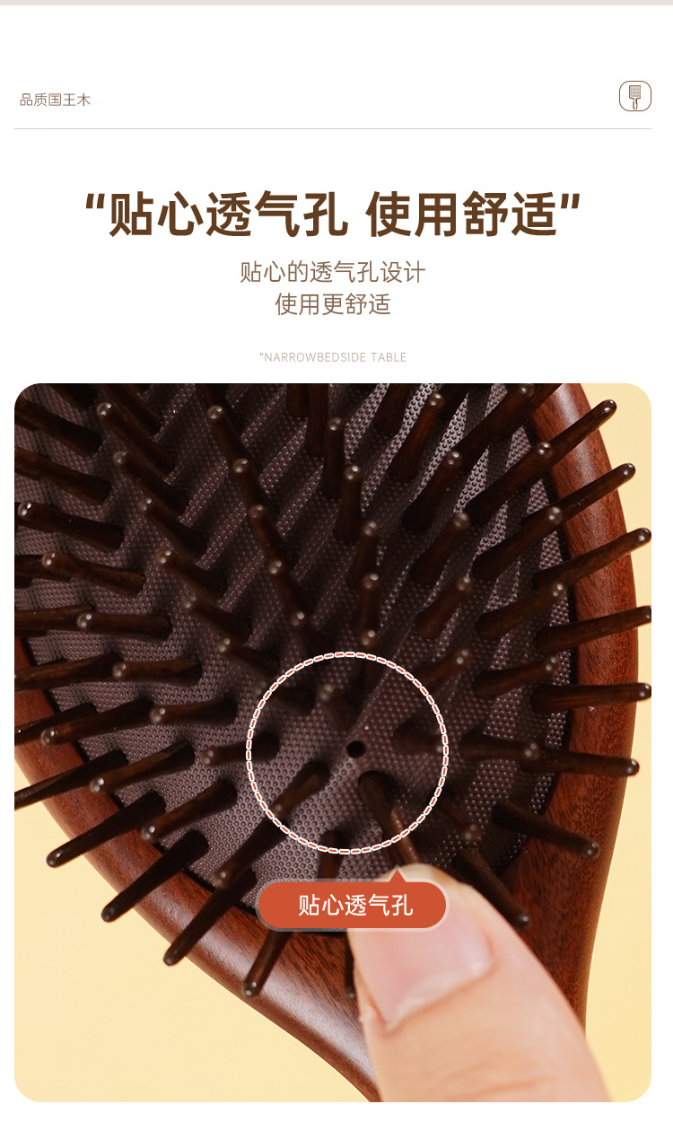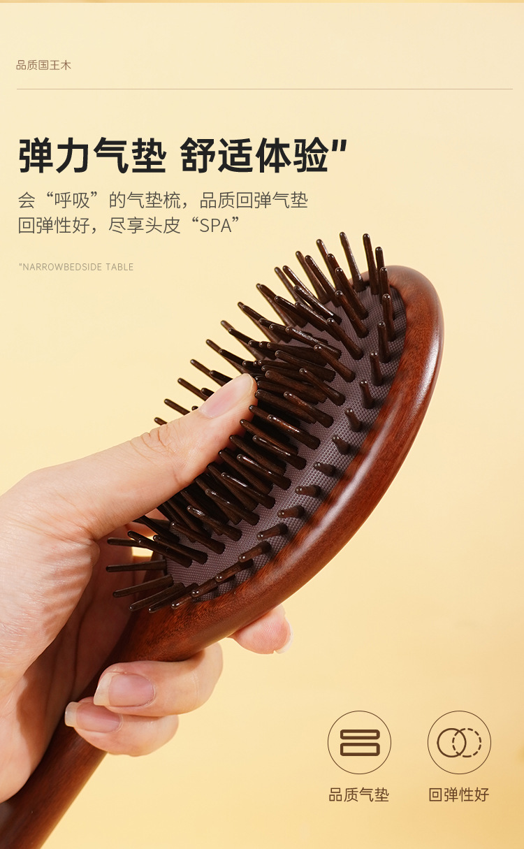 豚毛健康エアクッションコーム、携帯用ふわふわ経絡コーム、マッサージエアバッグ木製コーム、育毛・ヘアケア
