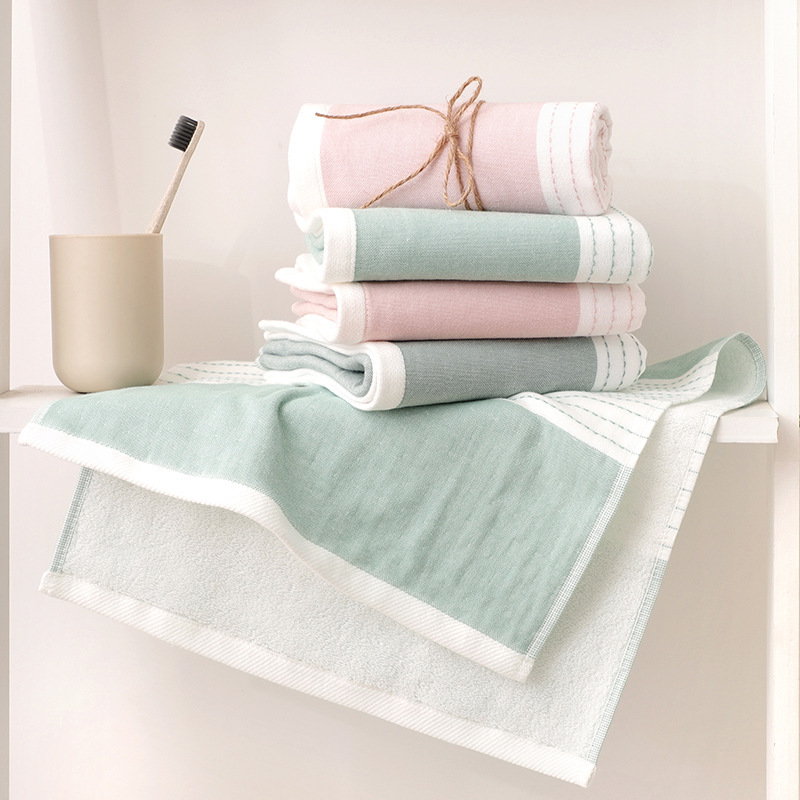 日本系シンプルな格子ガーゼタオル家庭布芸タオルカップル洗面タオル成人タオルホテルギフトタオル