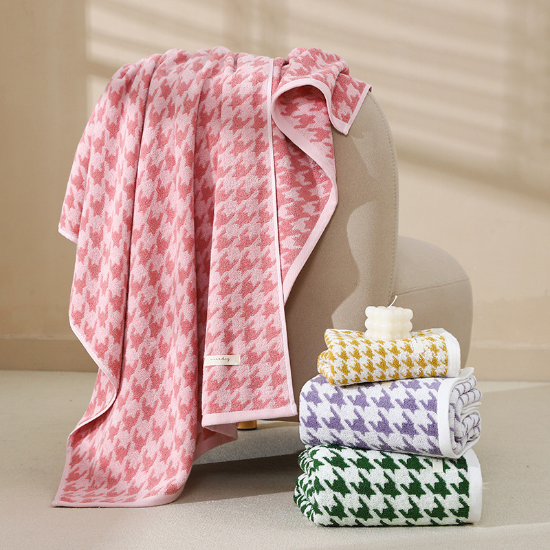精練綿タオル千鳥格プリントバスタオルを厚くして吸水して毛が落ちにくい家庭用洗顔タオルセット