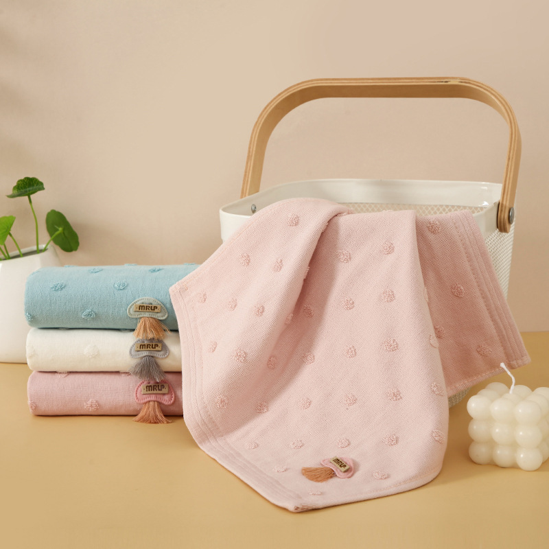 卸売綿製子供用タオル 吸水性のあるジャカードドット柄 かわいい子供用タオル 漫画柄ベビータオル カラフルなドット柄 幼稚園児用 赤ちゃん用