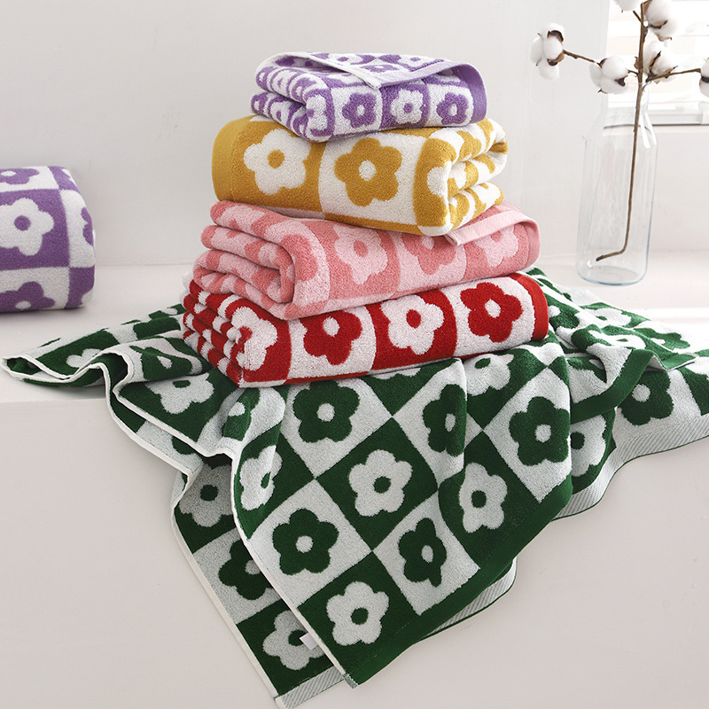 レトロな格子柄のバスタオル、越境卸売、インスタ映えするシンプルなフェイスタオル、柔らかく吸水性のあるカップルタオルセット