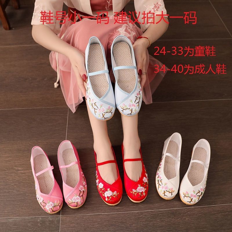 女の子の刺繍靴、中国風のダンスシューズ、子供用漢服靴、エスニック風の子供靴、古代風の衣装靴、手作りの布靴