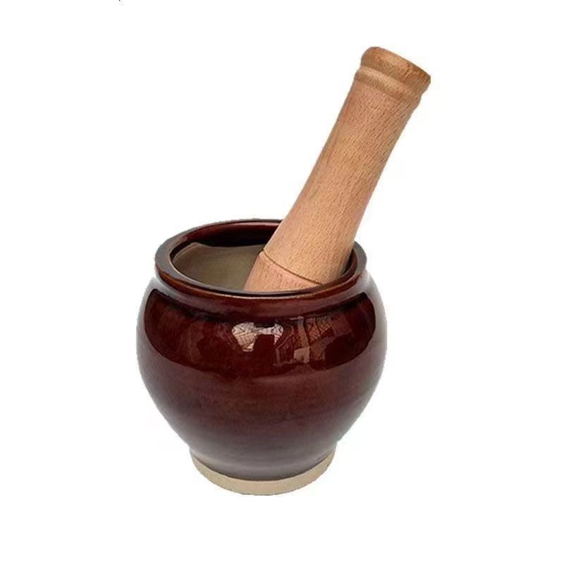老式捣蒜器蒜臼子厨房砸蒜器家用捣蒜锤压蒜器陶瓷捣蒜缸蒜臼包邮
