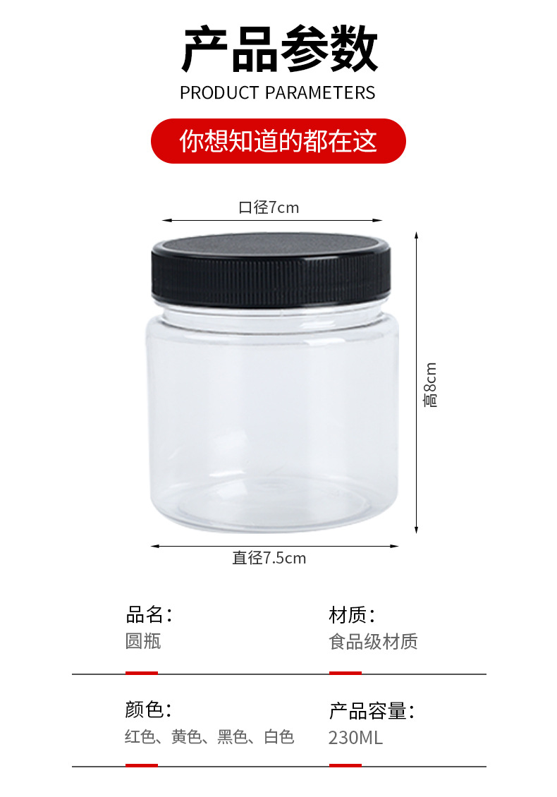 0.5斤円蜂蜜瓶250グラム厚いpet透明プラスチック瓶食品瓶ナッツ間食瓶