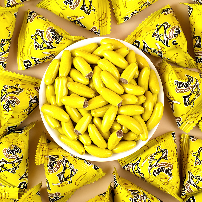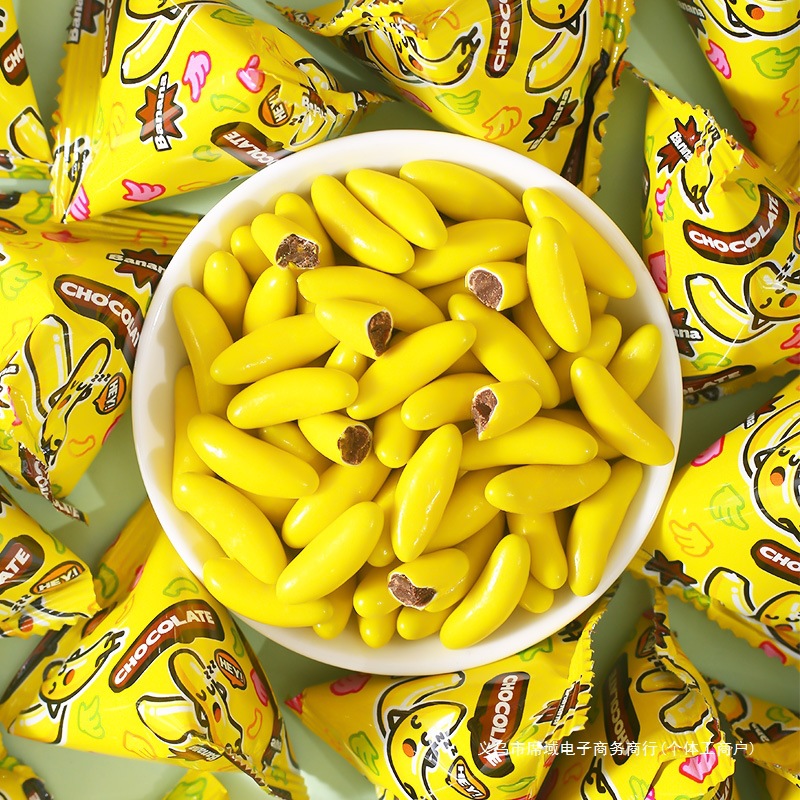 【抖音同款】香蕉型脆皮巧克力童年囤货注心糖果喜糖盒装网红