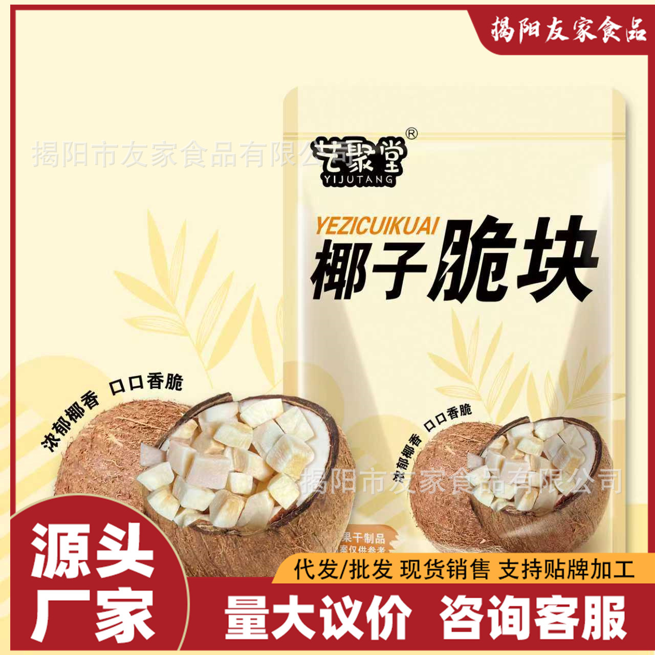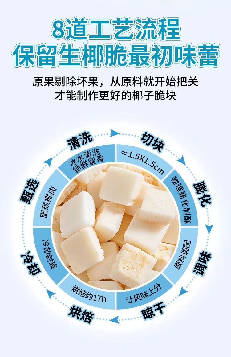海南特产椰子脆块香脆脆片烤椰块新鲜椰肉小吃孕妇办公室休闲零食