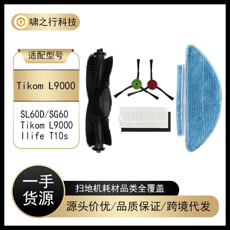 适用于Tikom L9000扫地机器人主滚刷边侧刷过滤网芯拖地抹布配件
