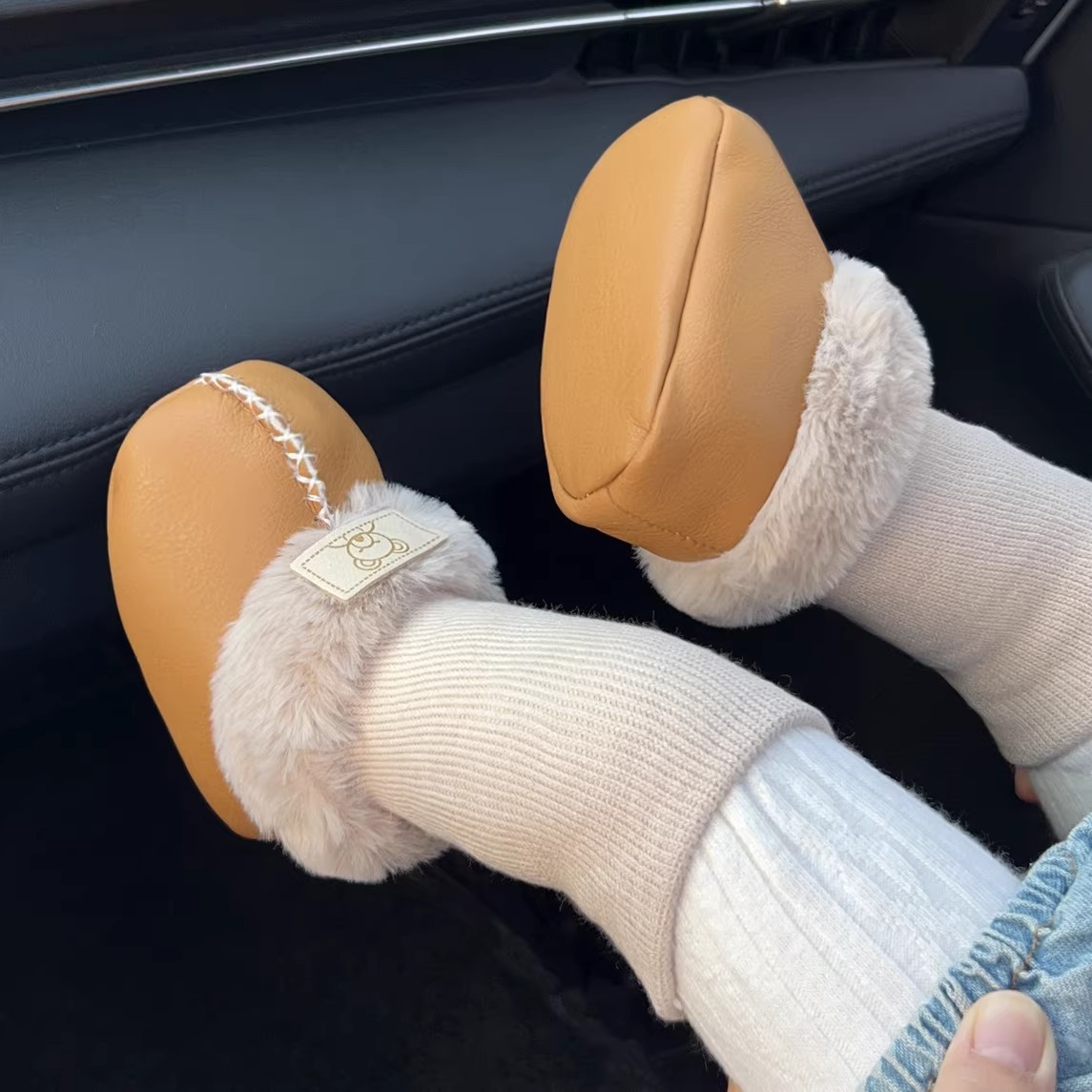 赤ちゃんの靴の靴下の冬の0-1歳の毛皮の一体靴の新生児の3-6-12月は厚い毛を入れて保温して足のカバーを防ぎます。
