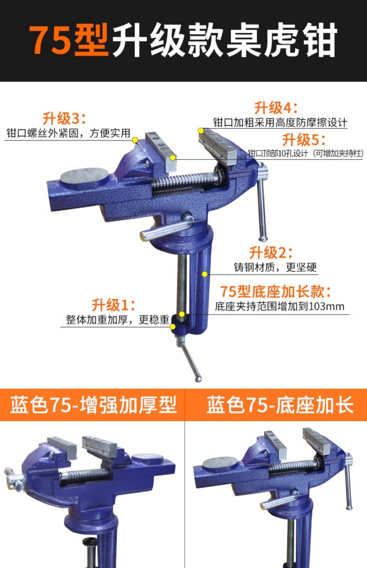 小型万向多功能家用台钳 工业级万能型360度旋转加长50型老虎台钳