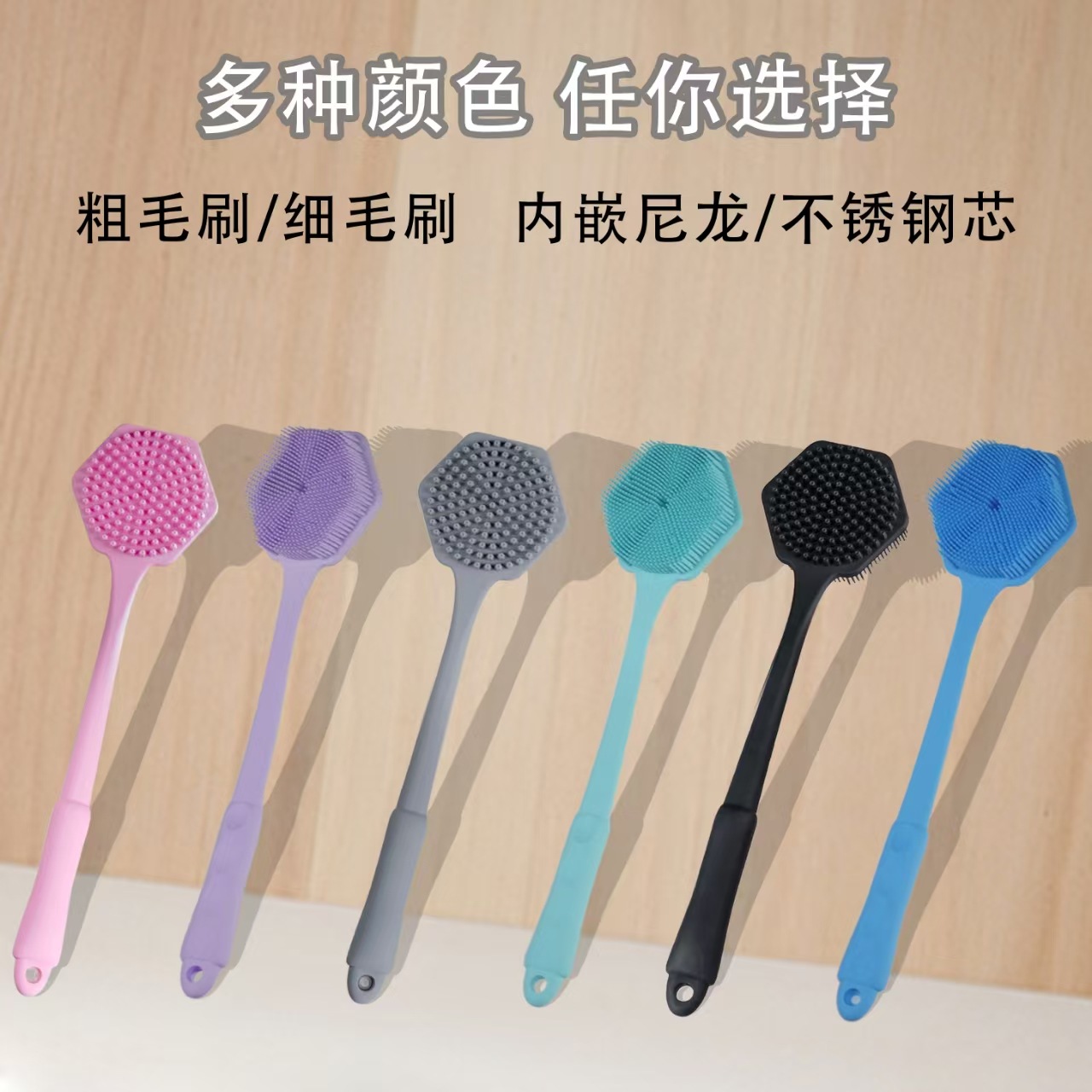 硅胶八边形长柄洗澡刷搓澡沐浴刷洗澡按摩刷冲凉淋浴刷现货批发