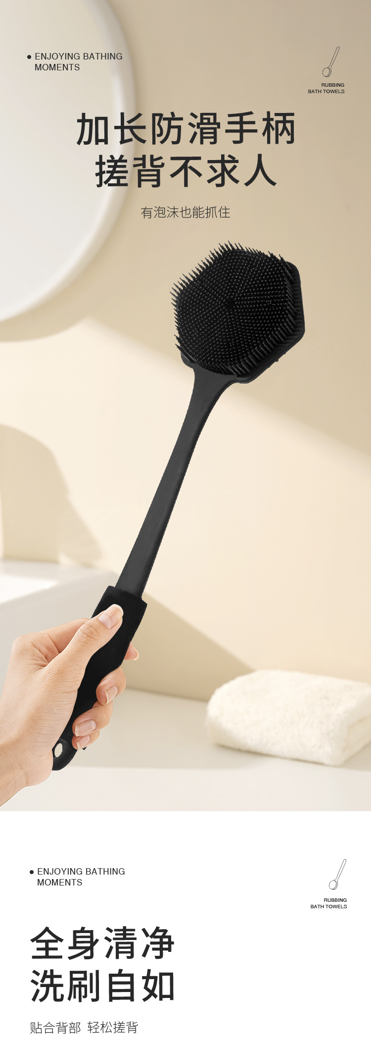 硅胶长柄洗澡刷双面搓澡沐浴刷洗澡按摩刷冲凉背刷加厚搓背器批发