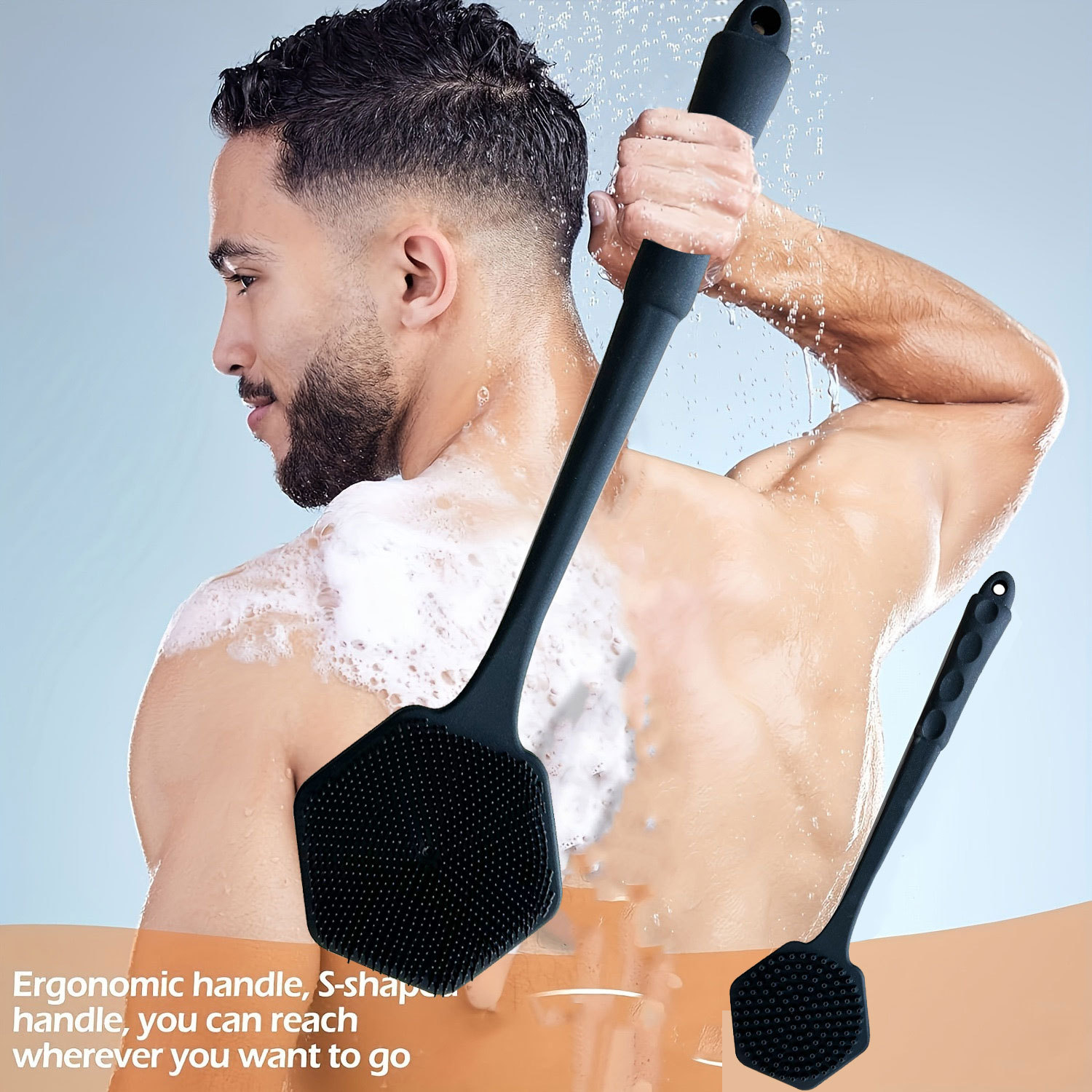 シリコン製ロングハンドルマッサージバスブラシ、背中もみブラシ、お風呂ブラシ、背中こすりブラシ、お風呂神器、TEMUラベル付き工場直販