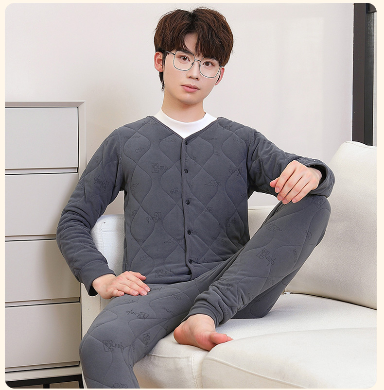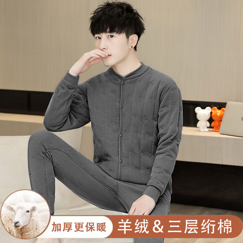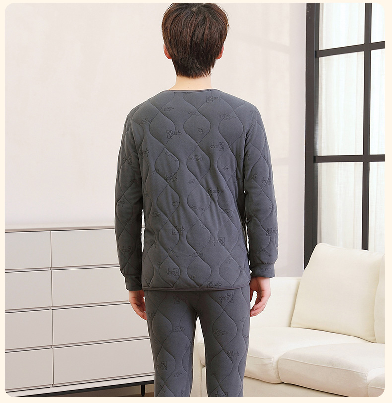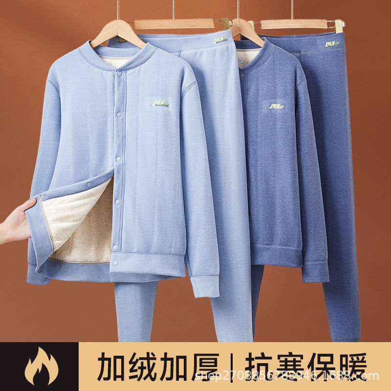 保温下着男性冬の青年の中襟秋衣秋ズボンとベルベットの厚い中高齢者のお父さん防寒セット