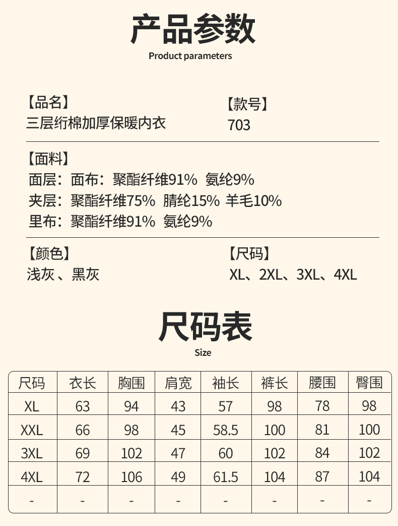 中老年德绒恒温保暖套装 三层加绒校服内搭 4XL大码