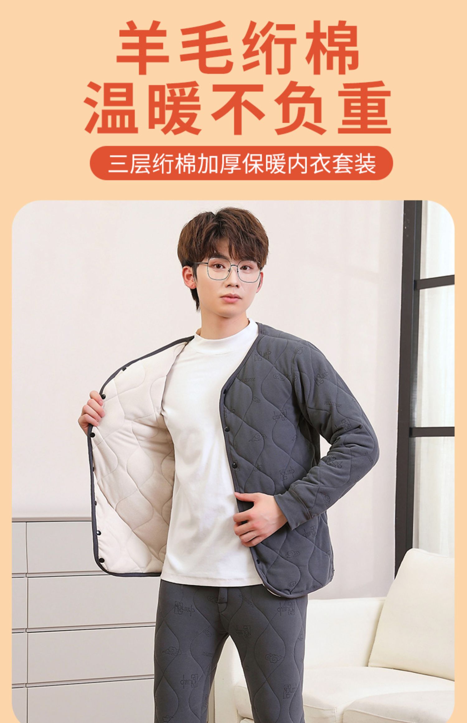 校服套装加厚神器棉上衣男士保暖内衣套装绗少青中年都可穿潮流
