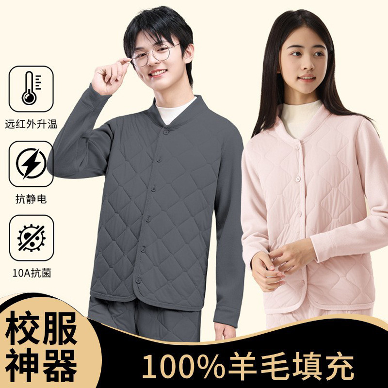 8710 冬校服神器羊毛青少年保暖内衣套装三层绗棉男