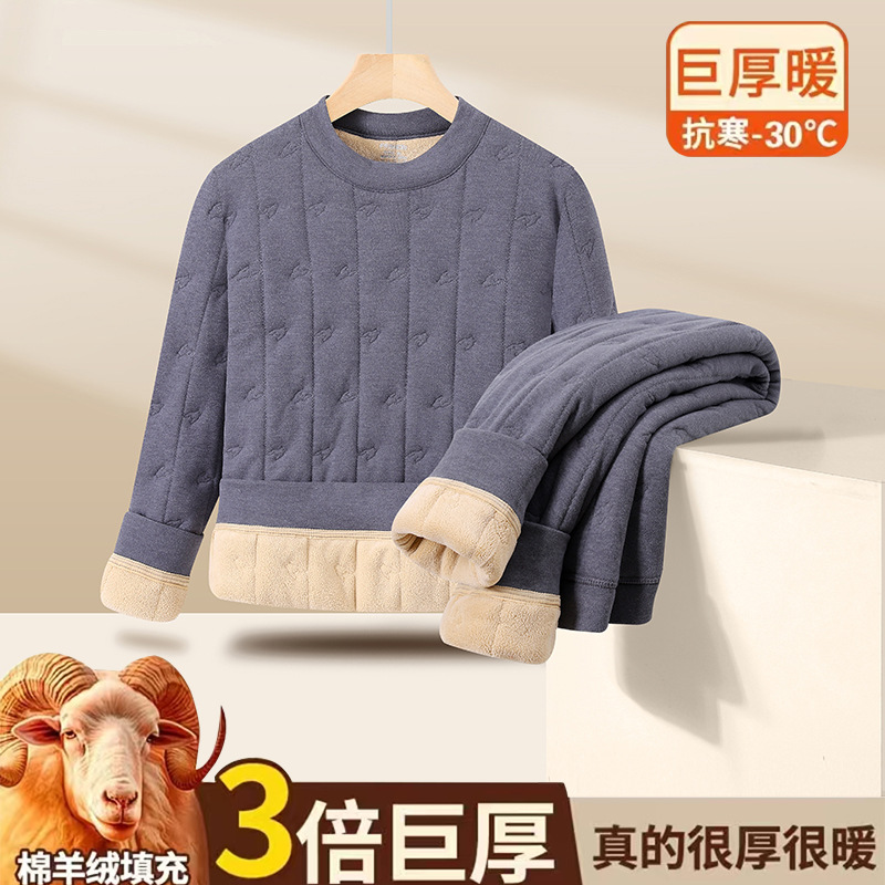 徳絨毛保温下着男性セット2024新型青少年高校大学生ベルベットダウン秋衣秋ズボン