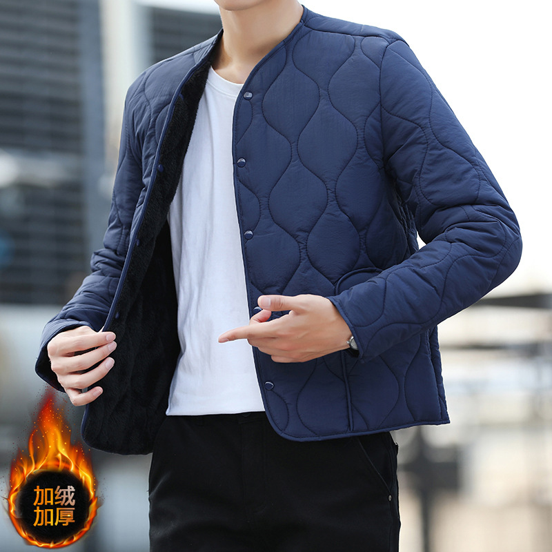 高校生の制服の神器の小さい綿入れの上着とベルベットの内胆を厚くして男性の中に綿の服を着て綿の小さい綿入れの丸襟の綿を挟みます。