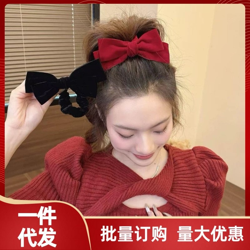 新年红色丝绒蝴蝶结扎头发发圈女喜庆马尾丸子头发绳橡皮筋扎头绳