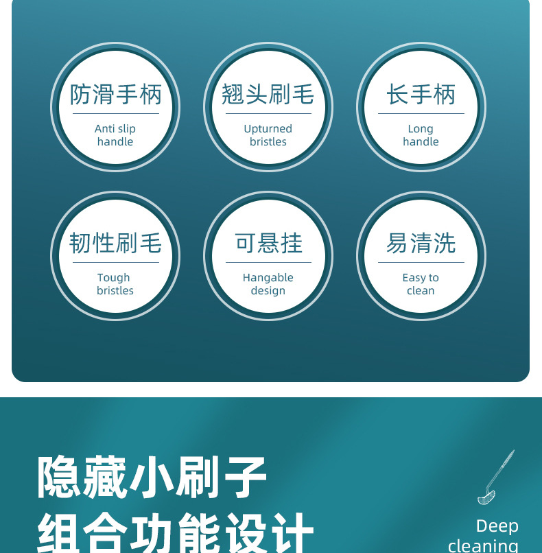 日本式トイレブラシ死角のない家庭用柔らかい毛の長い柄のトイレ用品多機能ブラシセット