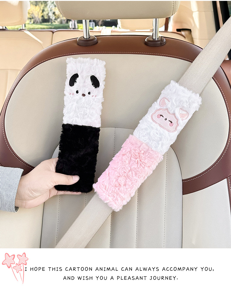 ブルーレイン安全ベルトショルダープロテクター、キュートなクマとウサギの車用安全ベルト保護カバー、車載用漫画風ぬいぐるみ、首を締め付けないショルダープロテクター
