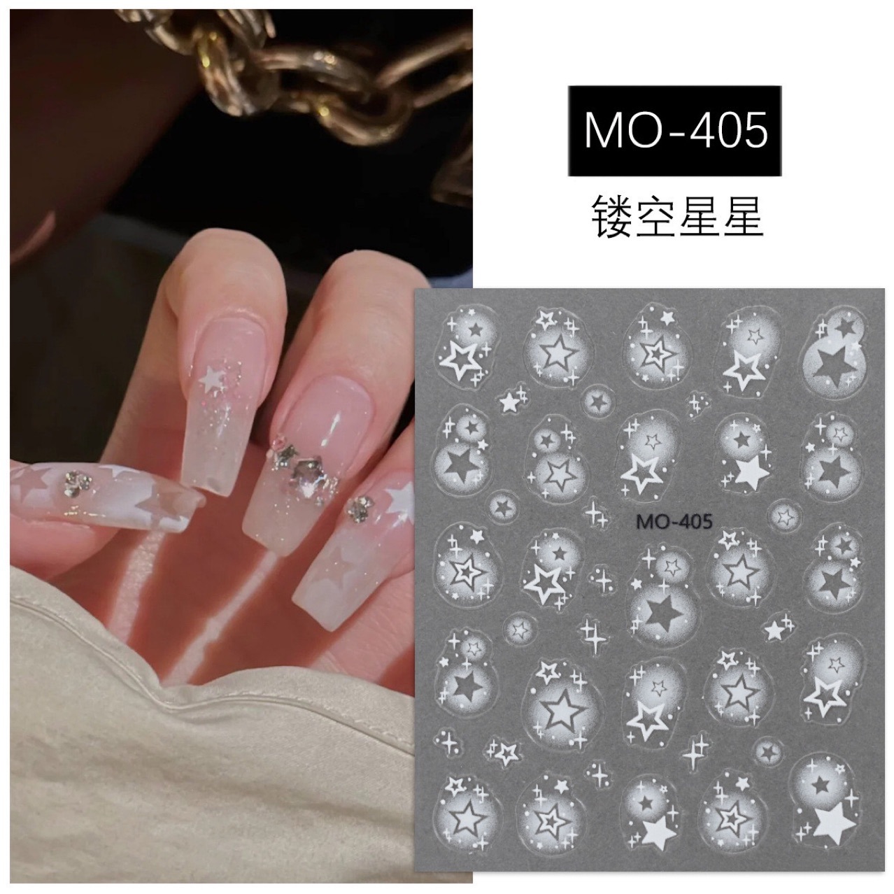 ネット赤爆金晶ドリル星芒ネイルシール3d箔押し銀フランス銀月裁判点ドリル百合爪貼り