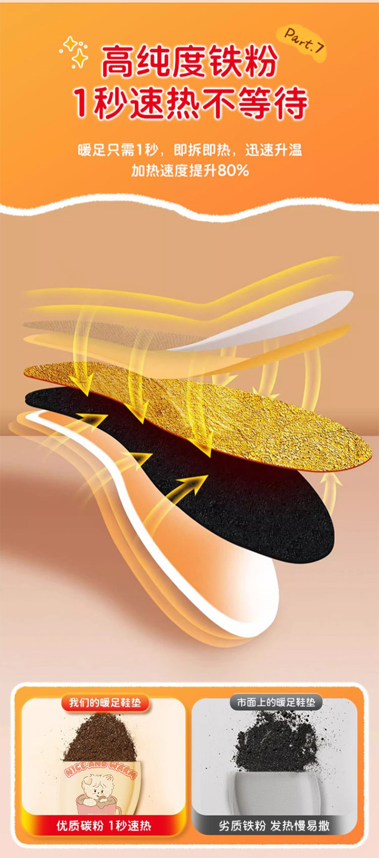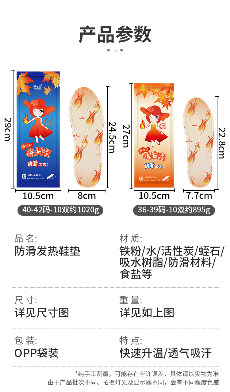 米卡博生姜艾草暖脚宝发热鞋垫36-43号艾草草本热敷自发热艾草发