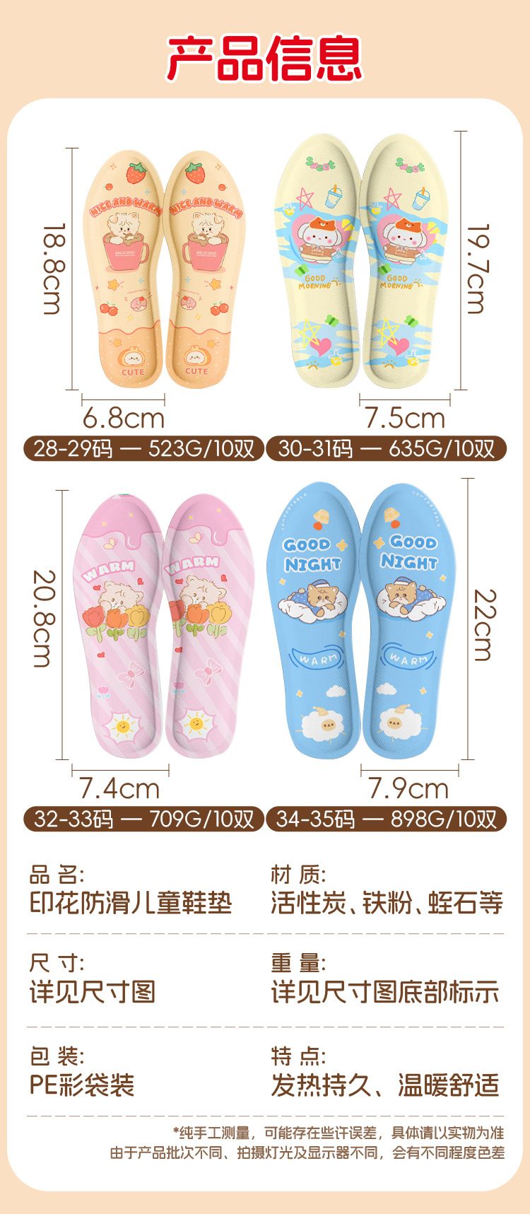 儿童发热鞋垫免充电自发热可行走暖足贴宝宝冬季天小孩脚底加热垫