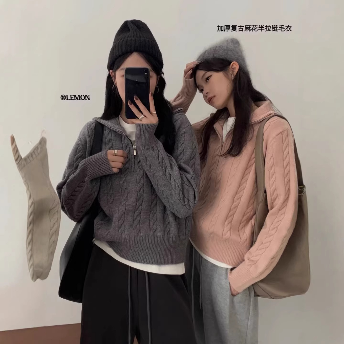 设计感半拉链麻花套头毛衣女秋冬新款复古休闲短款百搭针织衫