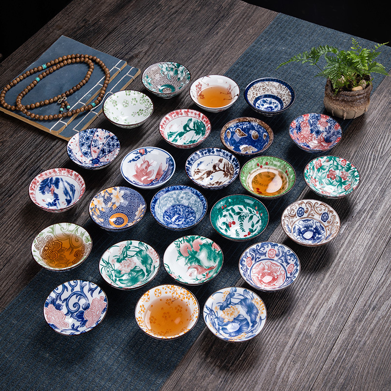 青花磁器カップ闘笠カップ工夫茶器陶磁器シングルカップ家庭用主人カップ日本式手描きカップ