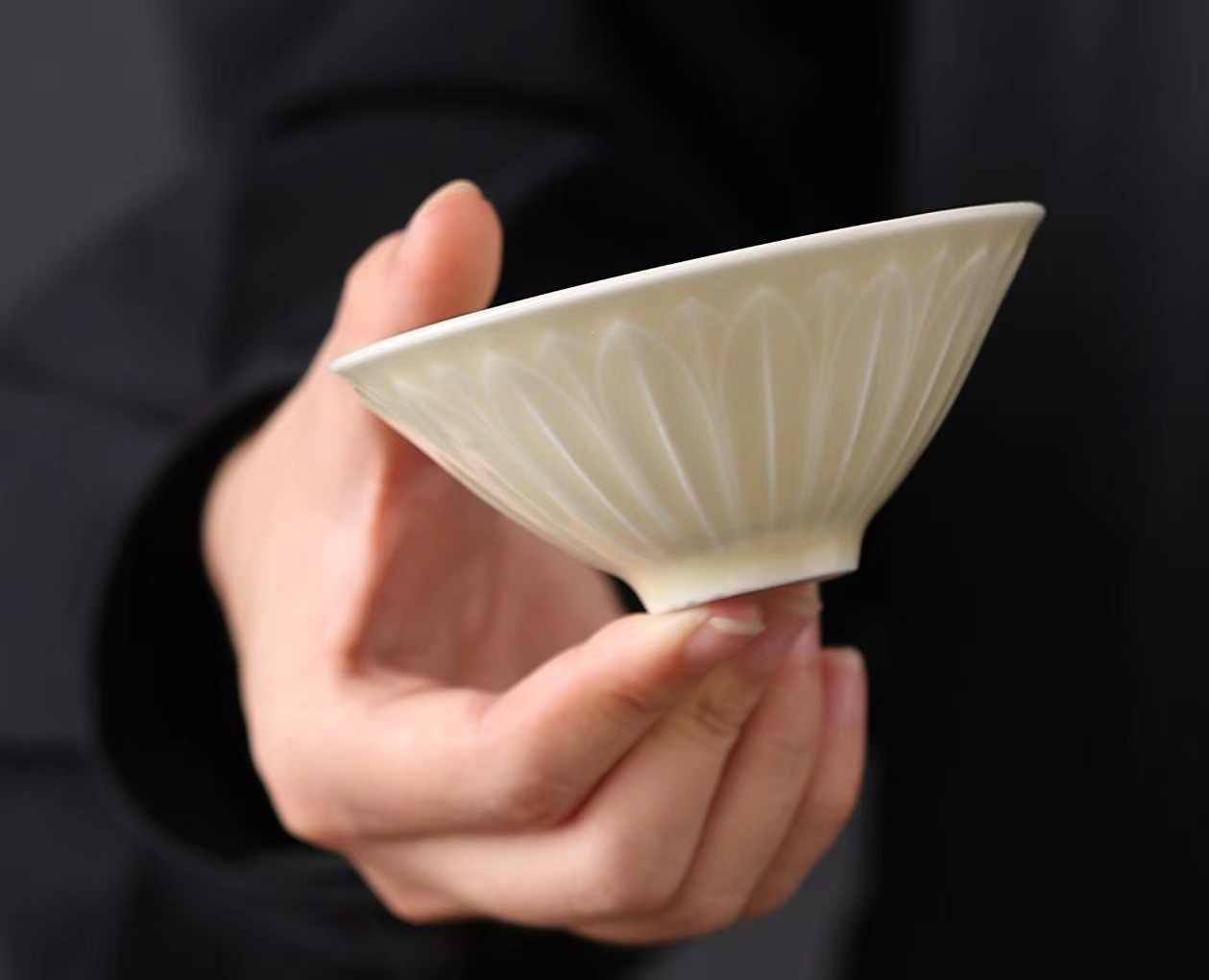 汝窯主人杯高級個人専用カップ茶具単杯青花陶磁器茶杯開片米黄主人杯