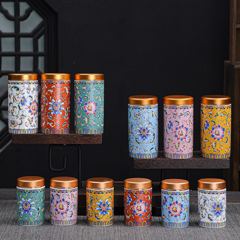 エナメルセラミック茶葉缶ミニトランペット花茶乾果密封缶家庭用貯蔵缶旅行携帯茶缶