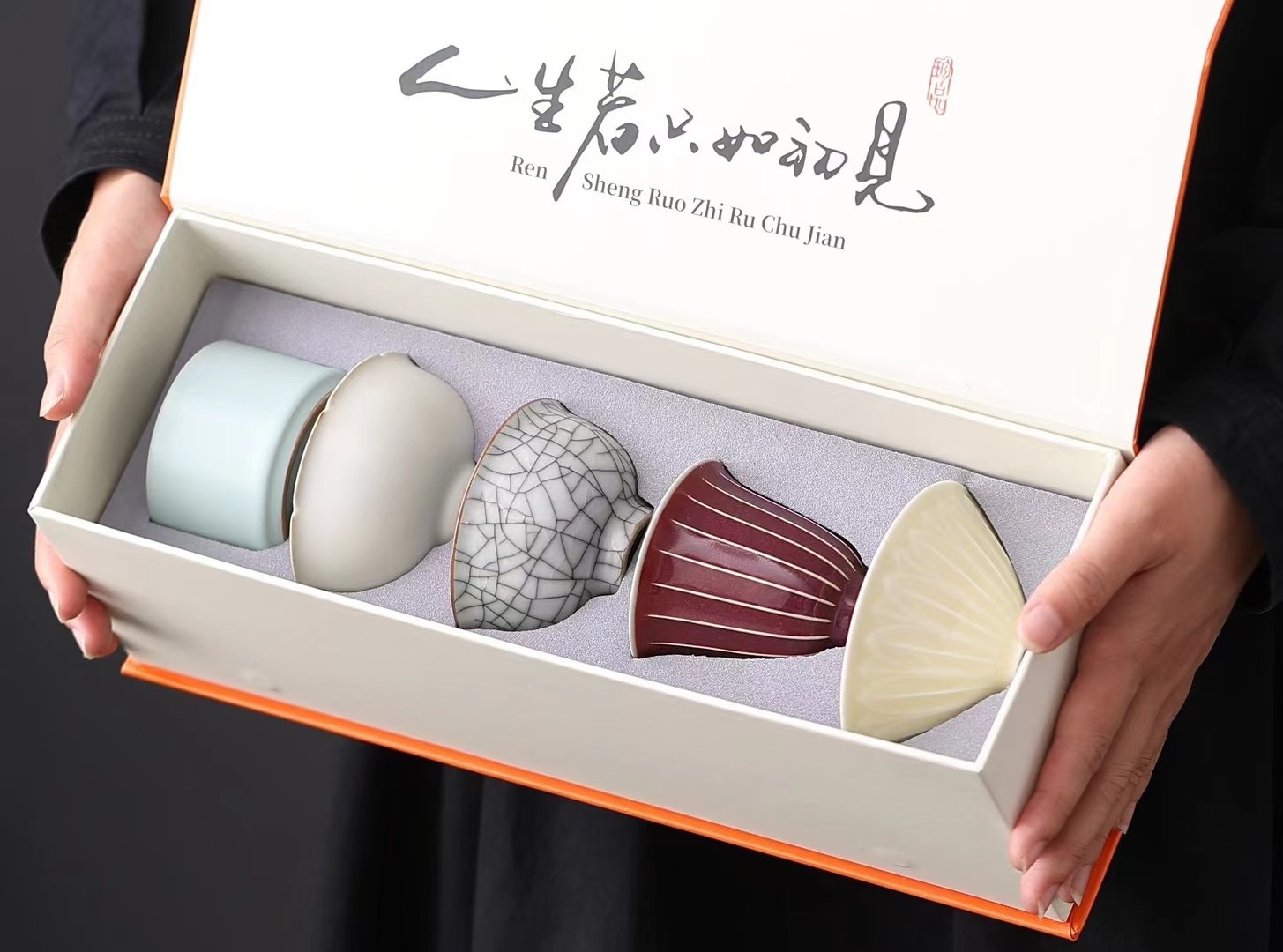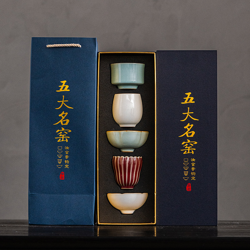 五大名窯ティーカップ、マスターカップ、個人用カンフーティーセット、陶器ティーカップ、ギフトボックス、カスタムロゴ