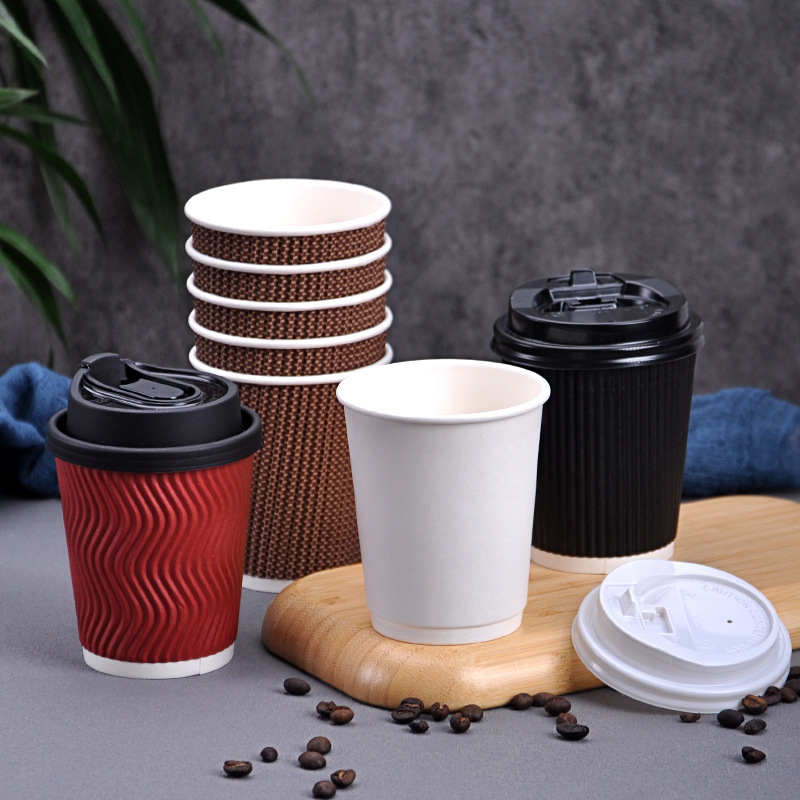 使い捨てコーヒーカップ商業二重層厚みのある火傷防止紙カップホットドリンク波形カップ波形カップ蓋付き包装カップ