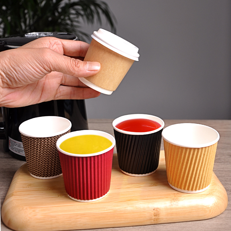 使い捨て4オンス(100ml)4ozコーヒーカップ、テイスティングカップ、二重構造小型紙コップ、波型カップ、エンボス加工カップ