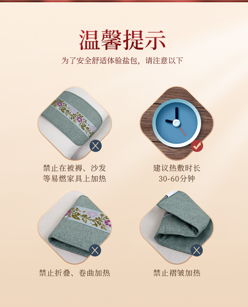 茗振海盐热敷包粗盐大粒盐艾草红花小茴香定时定温艾灸盐袋子