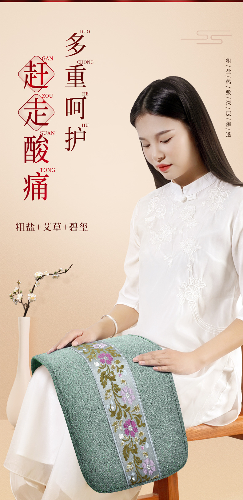 茗振海塩艾草ホットパック肩口粗塩全身通用電熱パック保温保護腰塩袋代理