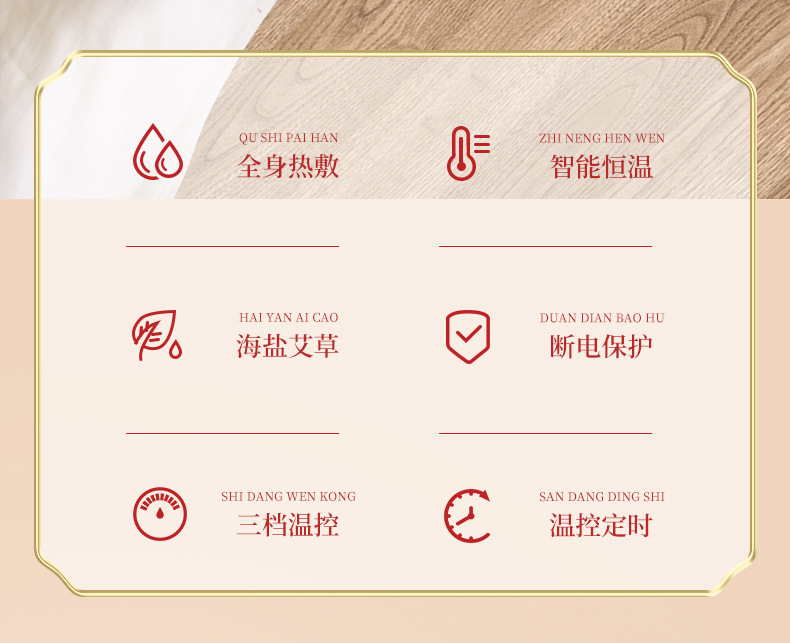 製品の特徴 3段階の温度制御,腰の温湿布,暖かさを保つ,海塩温湿布