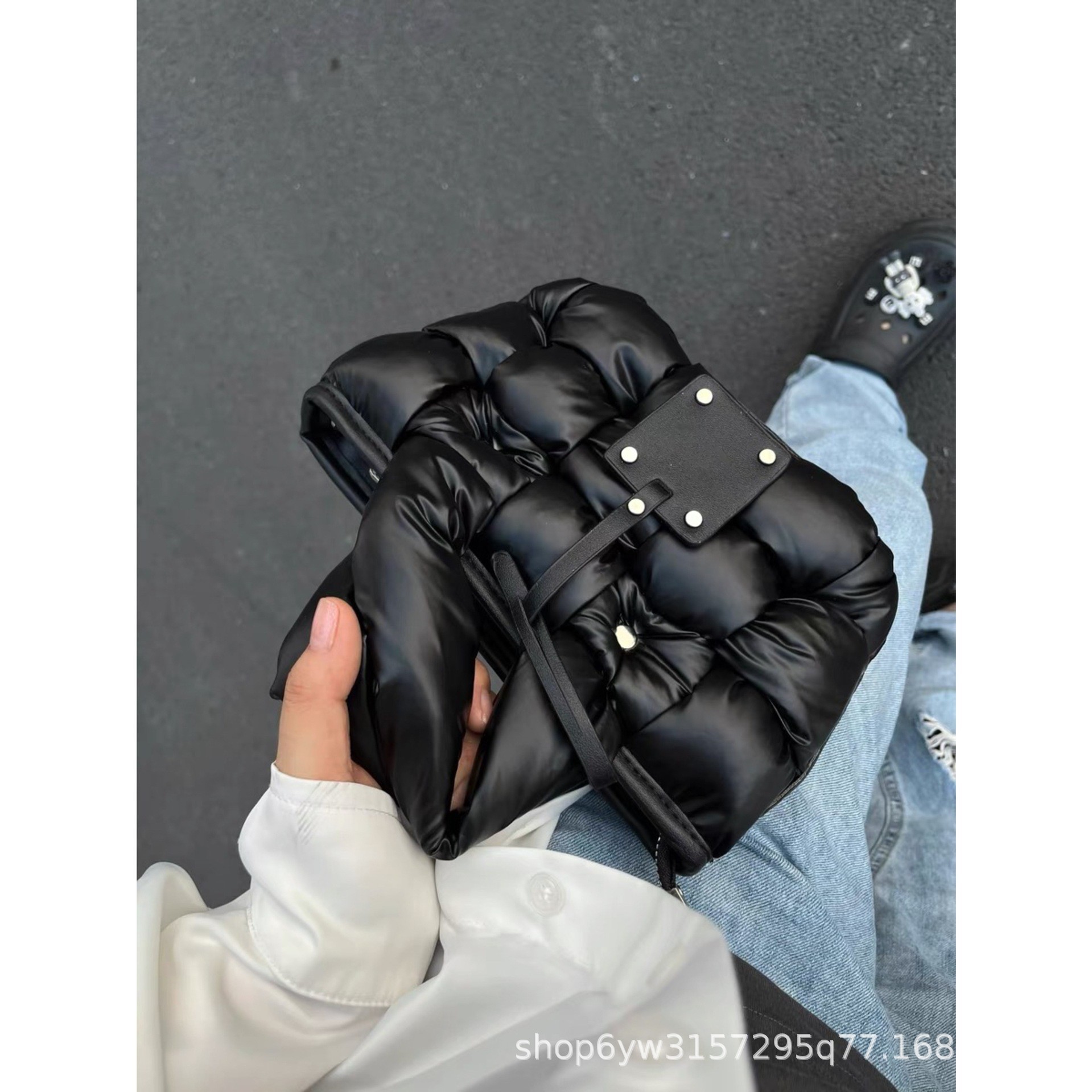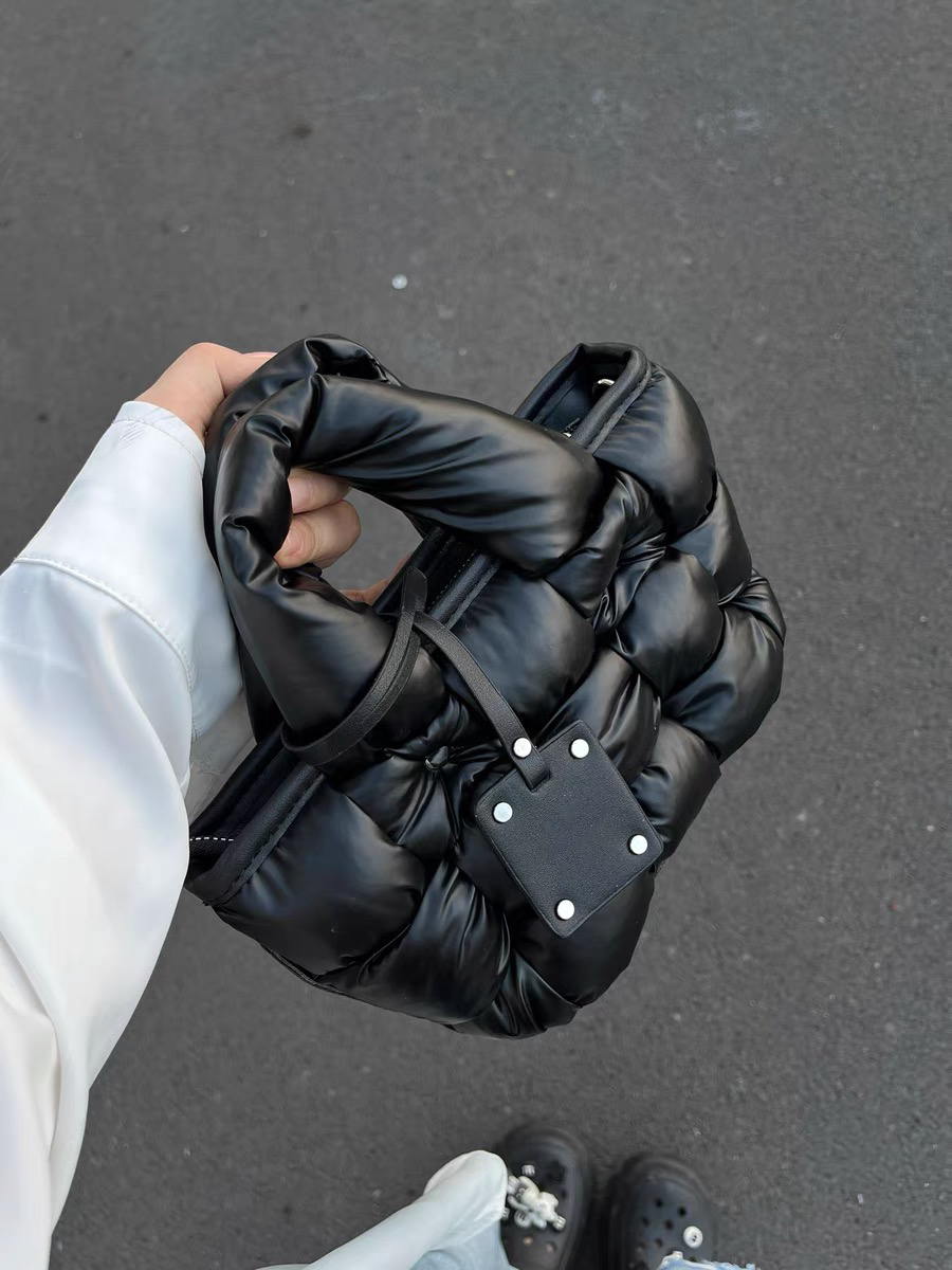 秋冬新款小众设计手提编织羽绒包包托特包时尚百搭休闲单肩斜挎包