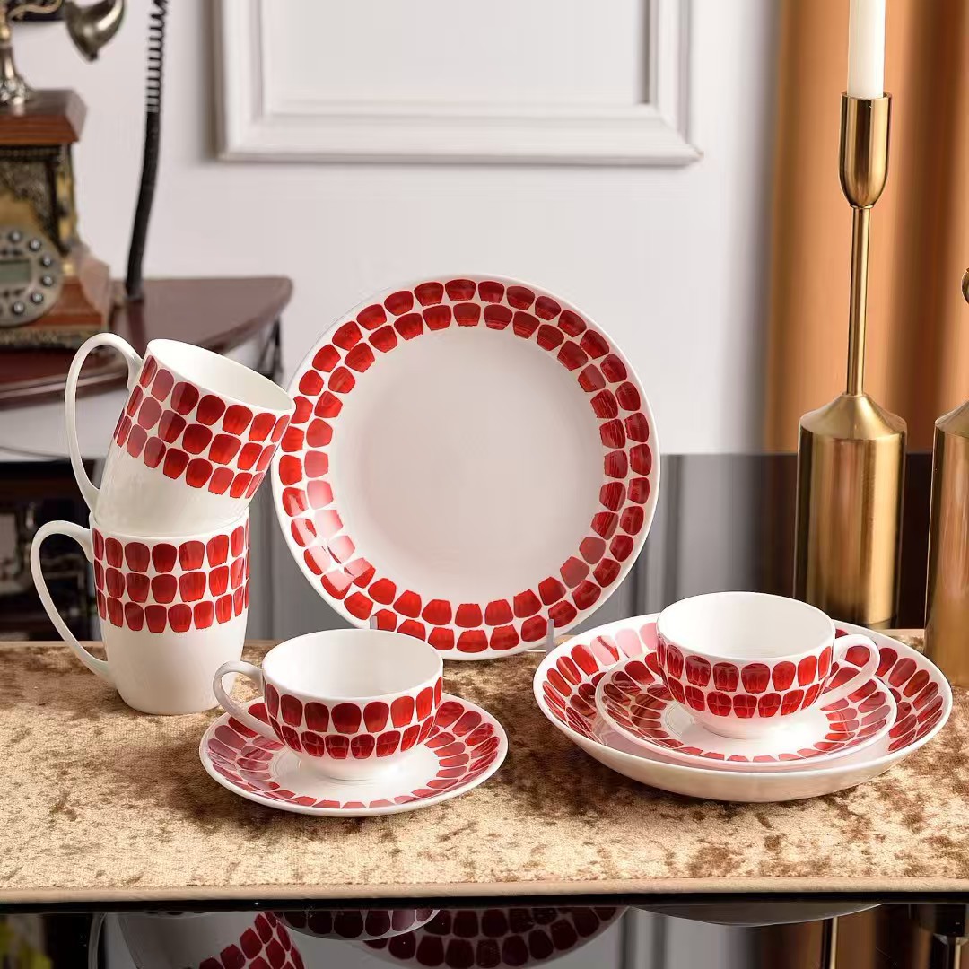 新商品24時間レトロ赤い点コーヒーカップ皿マグカップスープ碗深皿陶磁器食器プレゼントセット