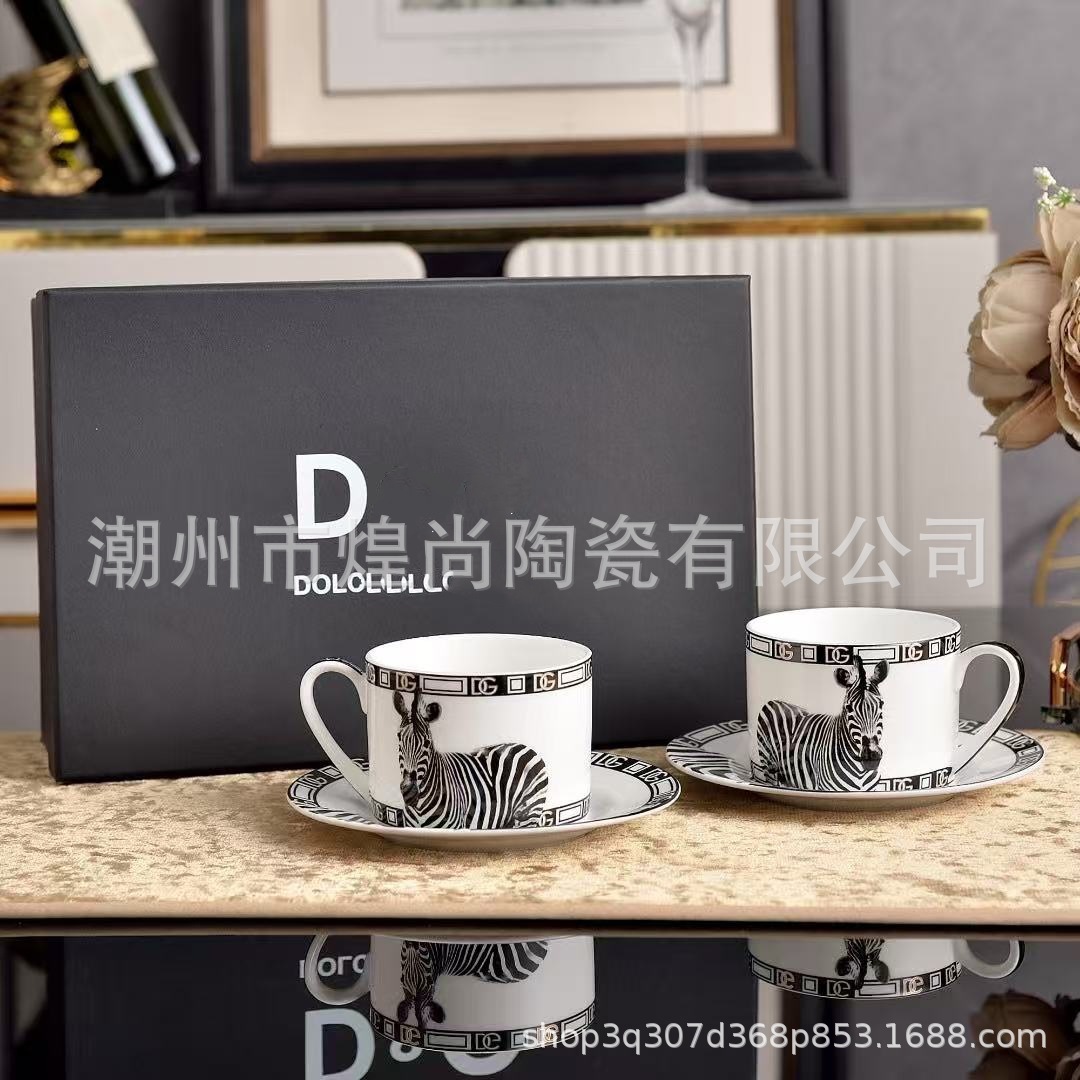欧式轻奢杜嘉DG斑马系列骨瓷咖啡杯碟情侣咖啡杯下午茶杯子礼盒装