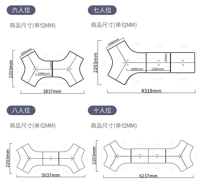 クリエイティブオフィステーブルと椅子の組み合わせ十字型四人のスタッフテーブル3/4/6/8人L型円弧異形スタッフテーブル